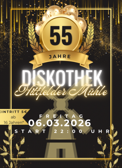Freitag 🪩 06.03.2026 🎉 Birthday Party! 🎶 Freitag ab 16 Jahren mit PFÜ! Die Diskothek ist 55 Jahre und die Windmühle feiert 150 Jahre! Wir möchten mit euch ordentlich feiern 🍾 🕘 Start: 22:00 Uhr 📍Diskothek Hittfelder Mühle Weg zur […]
