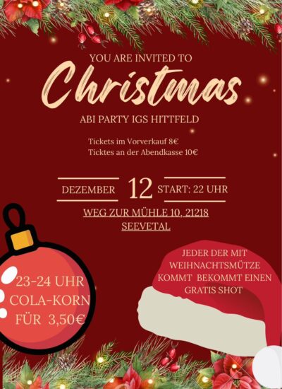 ~~ Freitag – 05.12.2025 ~~ ❗️❕Start: 22:00 Uhr ❕❗️ 🎄Getränke Specials 🎅 KornCola ~> 2,50€ Vodka-E ~> 3,50€ Eine Nikolausmütze auf dem Kopf sichert euch ausgewählte Shots für 1€ 🎅 🎶Unsere Newcomer DJ FYNNDER sorgt für absolute Hochstimmung auf dem […]